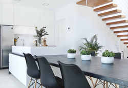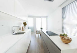 Il existe de nombreuses options de conception et de matériaux qui peuvent être utilisés pour cuisiner. Dans les maisons ECOBOX nous avons une vaste expérience et nous avons choisi les matériaux que nous connaissons ne posent aucun problème. Nous utilisons du bois DM hydrofuge pour portes et tiroirs, avec des pinces ou des golases discrets pour éviter les poignées traditionnelles pour un look de cuisine plus design. Sur cette carte DM la meilleure finition est le revêtement en PVC, à partir de laquelle vous pouvez choisir entre blanc, une multitude de couleurs unies et même également fini en bois.